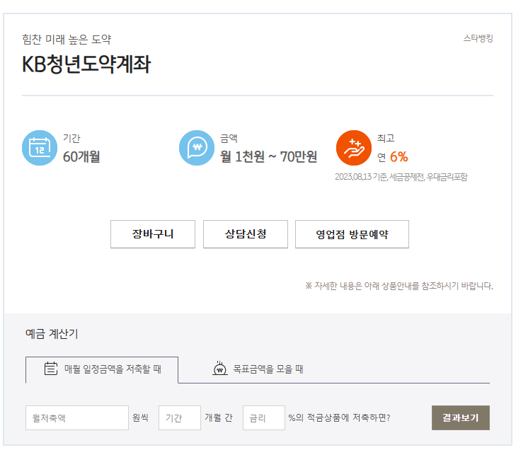 청년도약계좌란 청년( 만 19세 ~ 만 34세 이하)의 중장기 지원을 통해 자산을 형성할 수 있는 정책형 금융상품입니다. 5년 동안 매월 70만 원 한도 내에서 자유롭게 납입할수 있고 60개월, 5년 납입시 5000만 원까지 자산을 모을 수 있도록 정부에서 도와주는 적금입니다. 또 이자 부분에 대해서 비과세 혜택을 받을 수 있으므로 청년층에 해당하는 분은 하루라도 빨리 신청하시어 자산형성 할 수 있는 기회를 놓치지 마세요~
