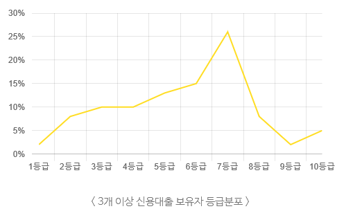 신용이 낮을수록 3개 이상 대출 비중이 높았습니다. 대출이 내 경제적 능력을